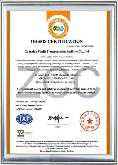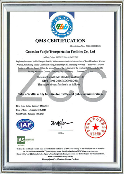Guanxian Yunjie Transportation Facilities Co., Ltd is a professional supplier of road safety facility products, officially registered in 2016 in Liaocheng City, Shandong Province, China. Our affiliated company has independently launched several new hot-dip galvanizing production lines, environmentally friendly electrostatic spraying production lines, scientific and technological hot-dip coating production lines, as well as the most advanced systematic production lines for pressing, punching, forming and cutting. The average annual production can reach 600,000 tons.